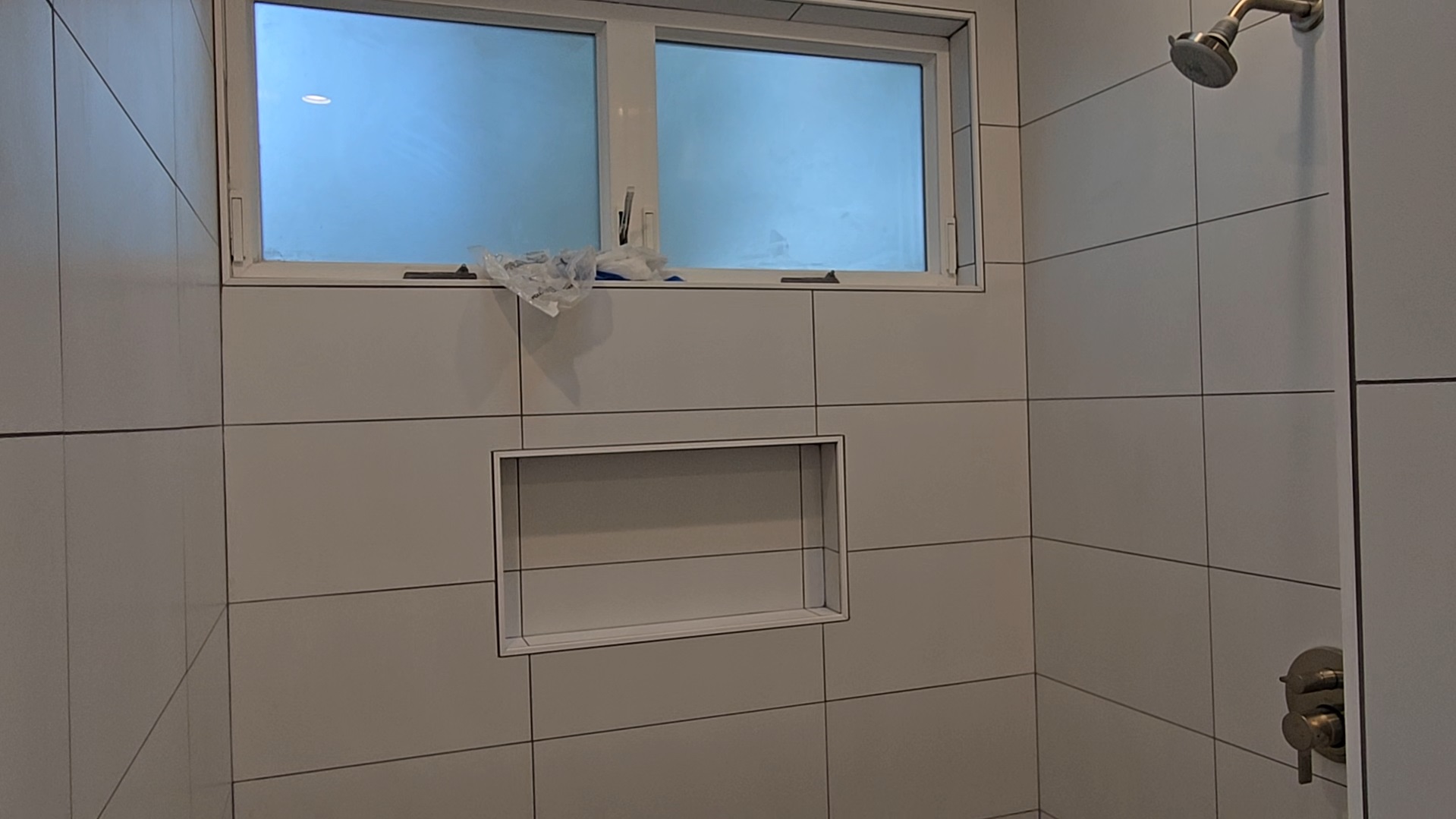 Tiled Shower with Window and Niche