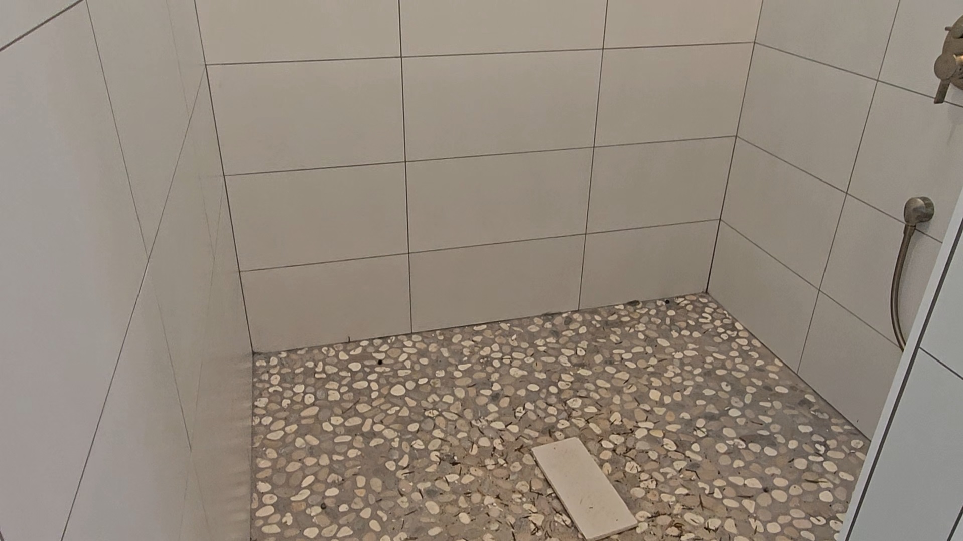 Stone-Tiled Walk-In Shower Floor with Drain